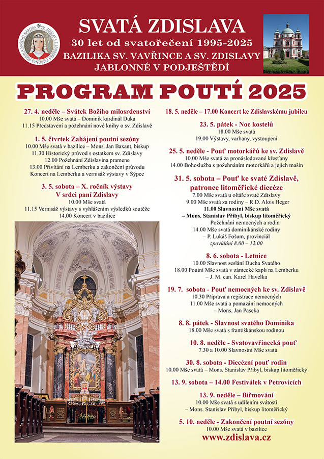 31. 5. sobota – Pouť ke svaté Zdislavě, litoměřické patronce diecéze